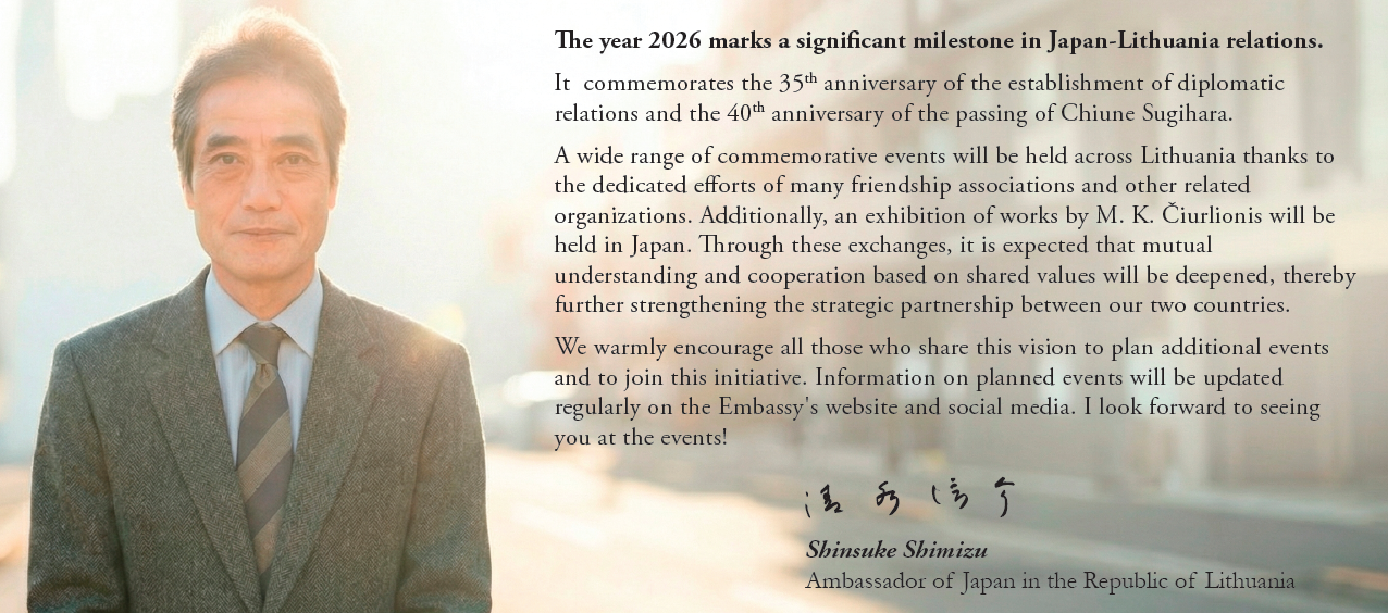 Japonijos ambasadoriaus Lietuvoje Shinsuke Shimizu sveikinimas